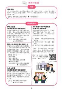 奨学金・給付金:高校授業料以外の教育費支援(市・県制度)、入学支援金、高等教育の就学支援制度(授業料免除・給付型奨学金)。