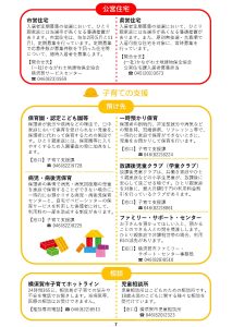 放課後児童クラブ(利用料割引あり)、ファミリー・サポート・センター(利用料減免)。